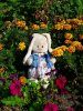 Особенно хочется отметить отличный пошив одежды: несмотря на мелкие детали, все очень аккуратно, платье украшено кружевной нижней юбкой, бантиком, застегивается сзади на 2 пуговки. Жакетик отделан тесьмой. У зайки есть милая сумочка, а одно ушко украшал синий цветок из лент. Правда, мы его срезали, чтобы не трепался в игре, планирую переделать в съемную брошку.